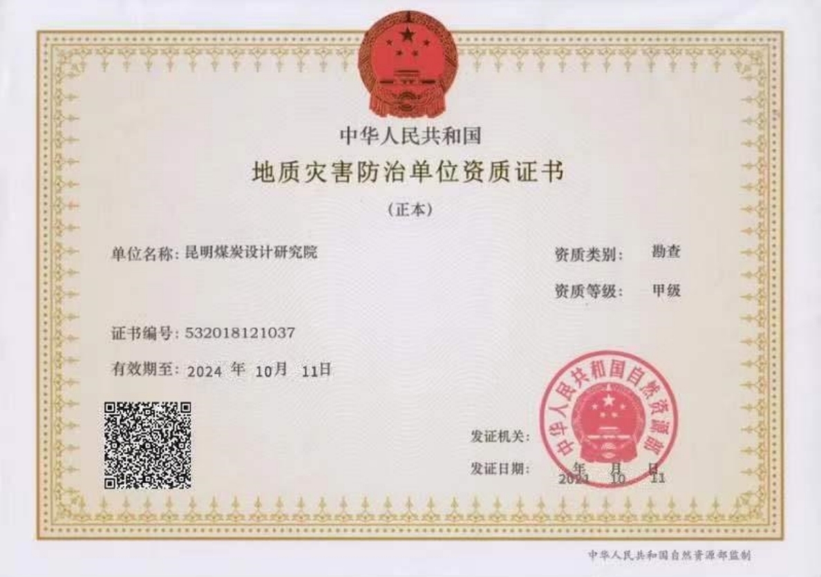 地質(zhì)災(zāi)害防治單位資質(zhì)證書(shū)